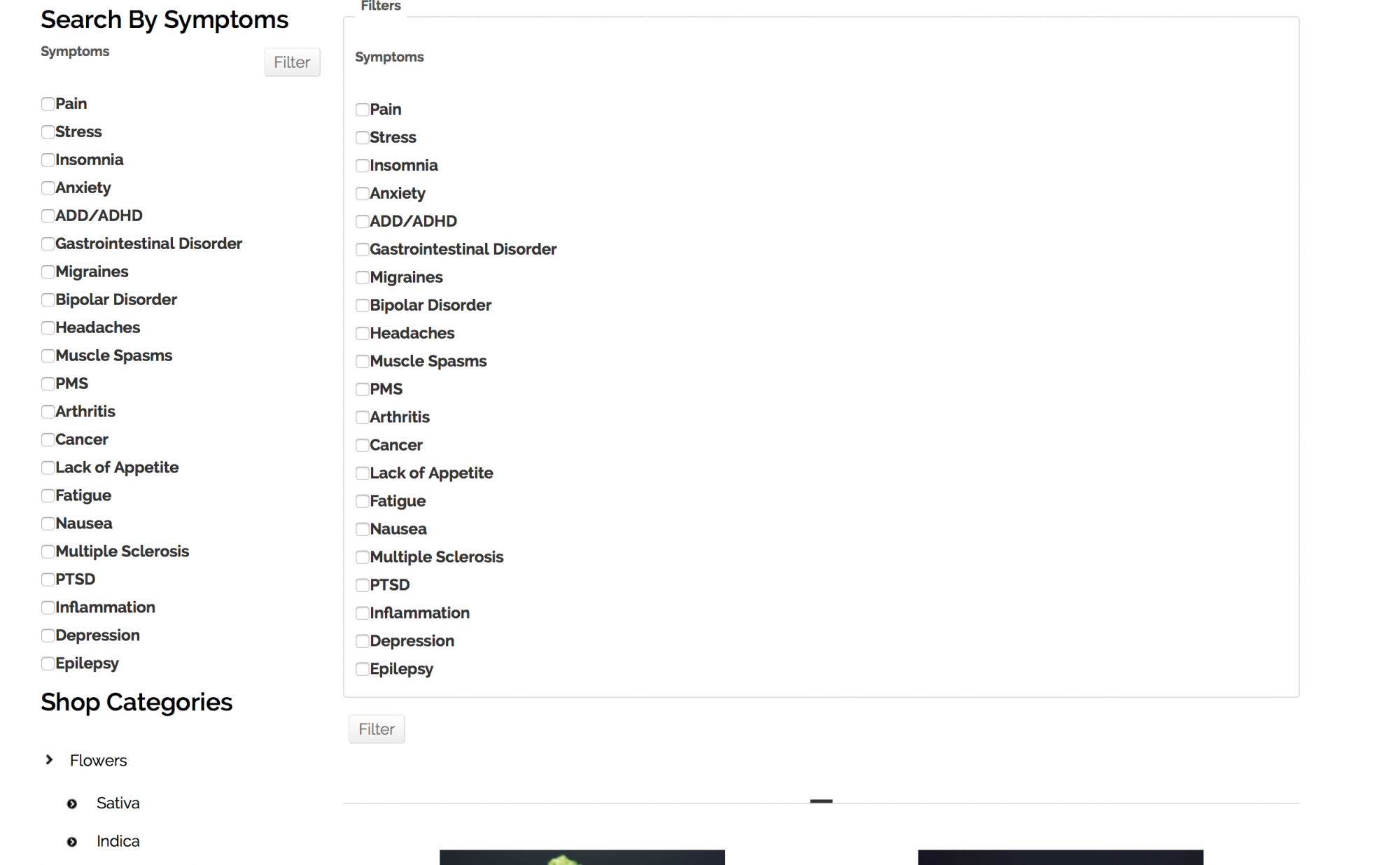 Almost there. Editing the options on the modules with the 200 & 210 ID's did the trick for most of the pages, but the filter search is still appearing on a couple of the listing pages. I have edited all of the menu items pertaining to category listings to not show the filters, but for some are still not affected. For instance from the main dropdown menu under "shop" the pages; extracts, sativa, indica and hybrid (the last three are sub items of "flowers") still show the filter search above the products. If I go to any of those pages via the sidebar menu, they the filter search does not appear.
