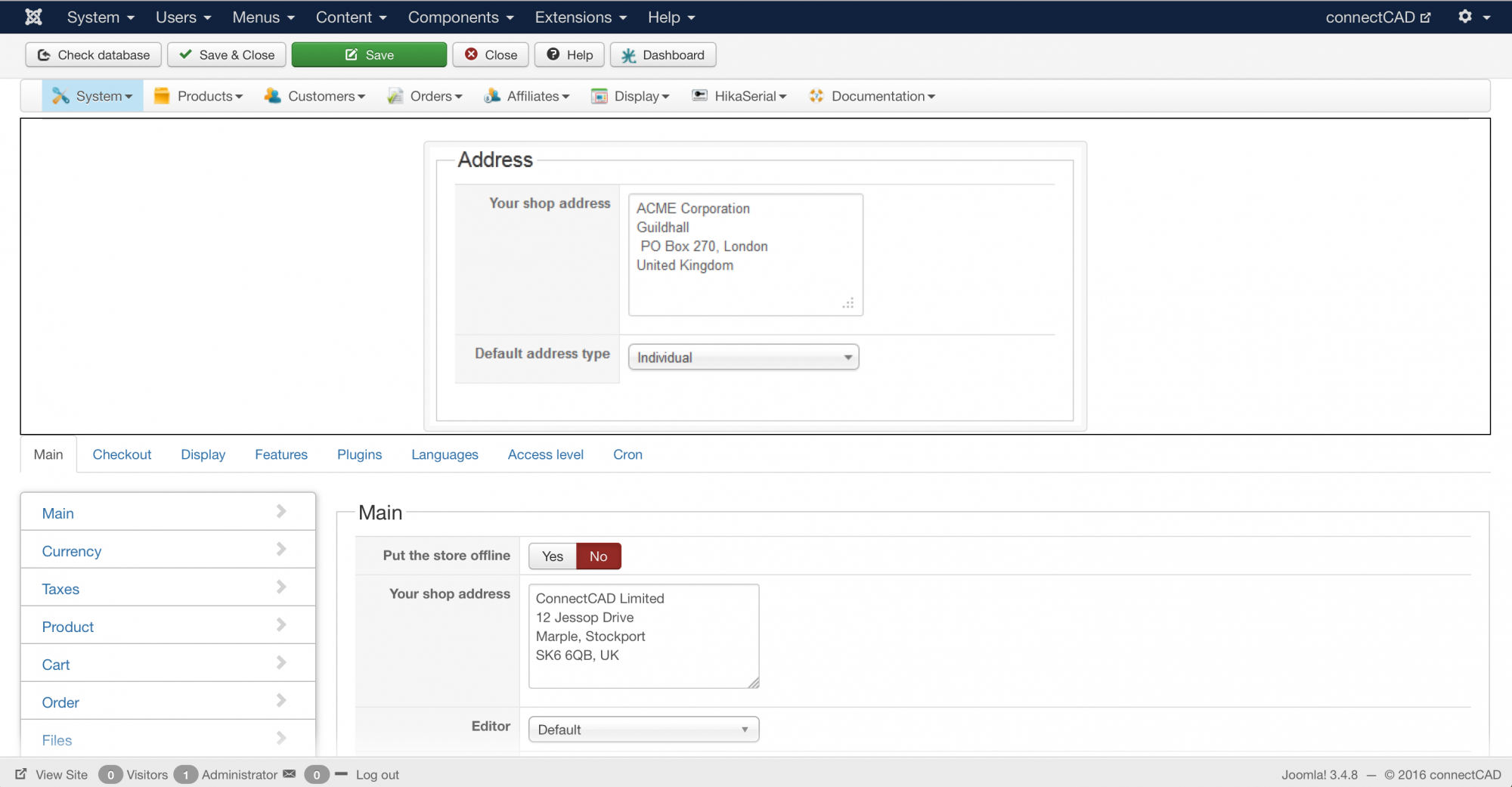 If you need to change it, you can do it from the database in the hikashop_config table.