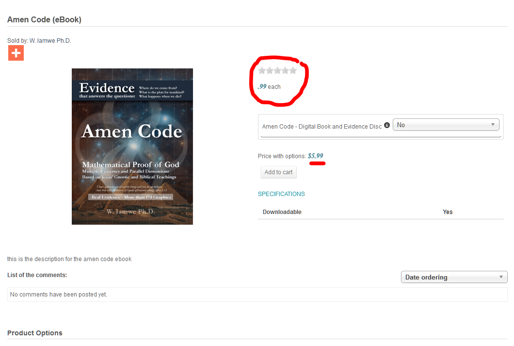 Note - Main product page is set up to display 5.99 not .99