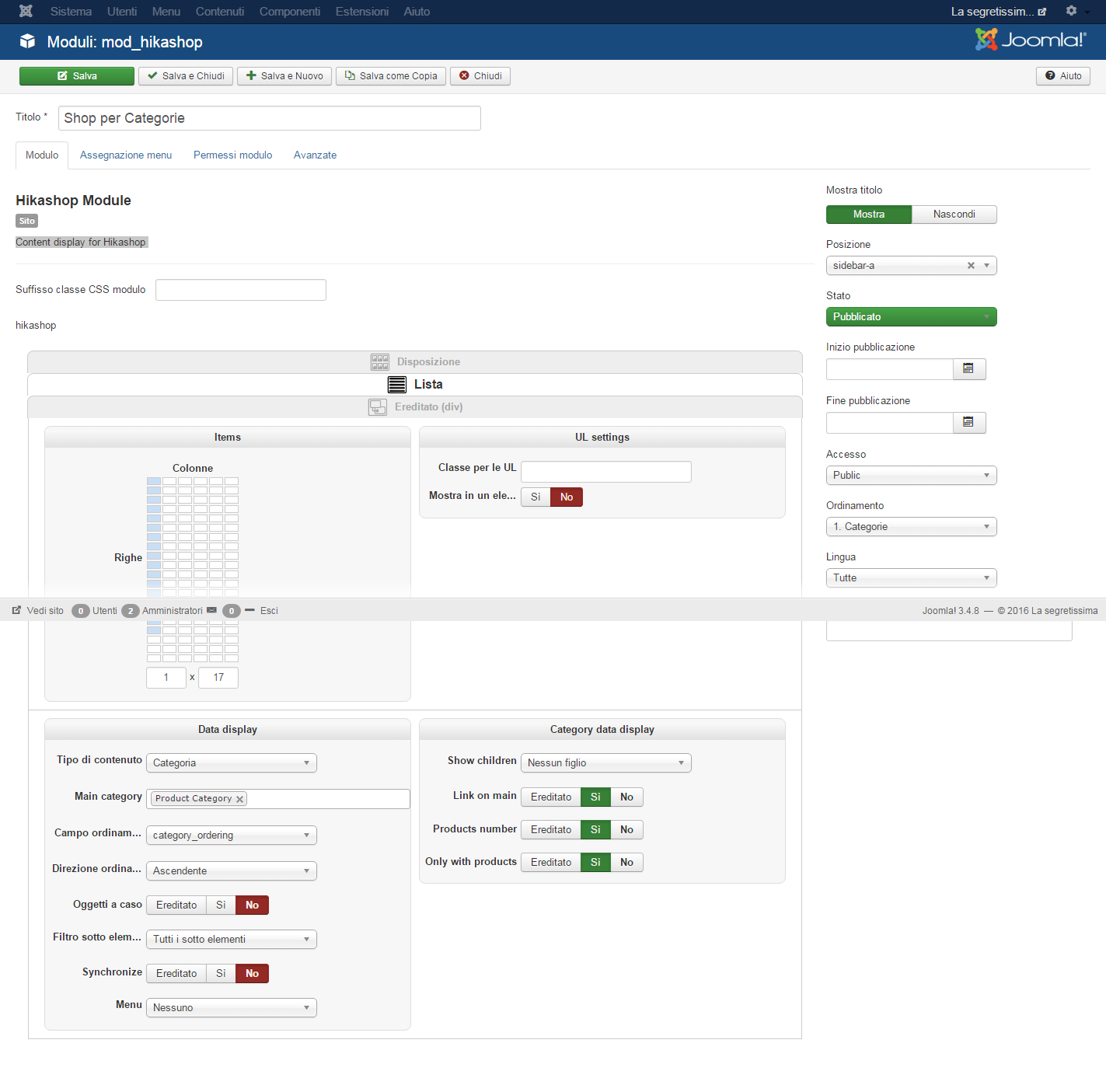-- Error-message(debug-mod must be tuned on) -- : I update hikashop but there are Error in menù of new category. I create new category of product Sicurezza (wtih 52 product).