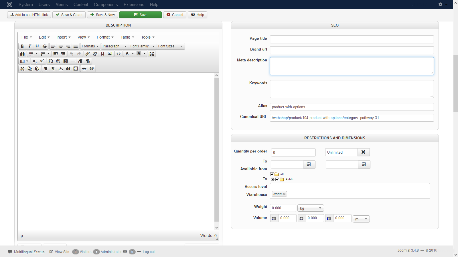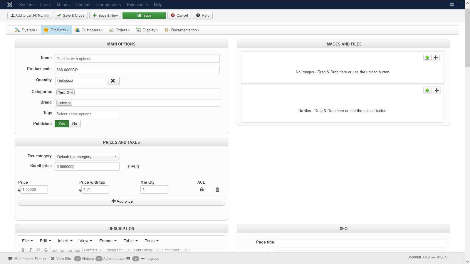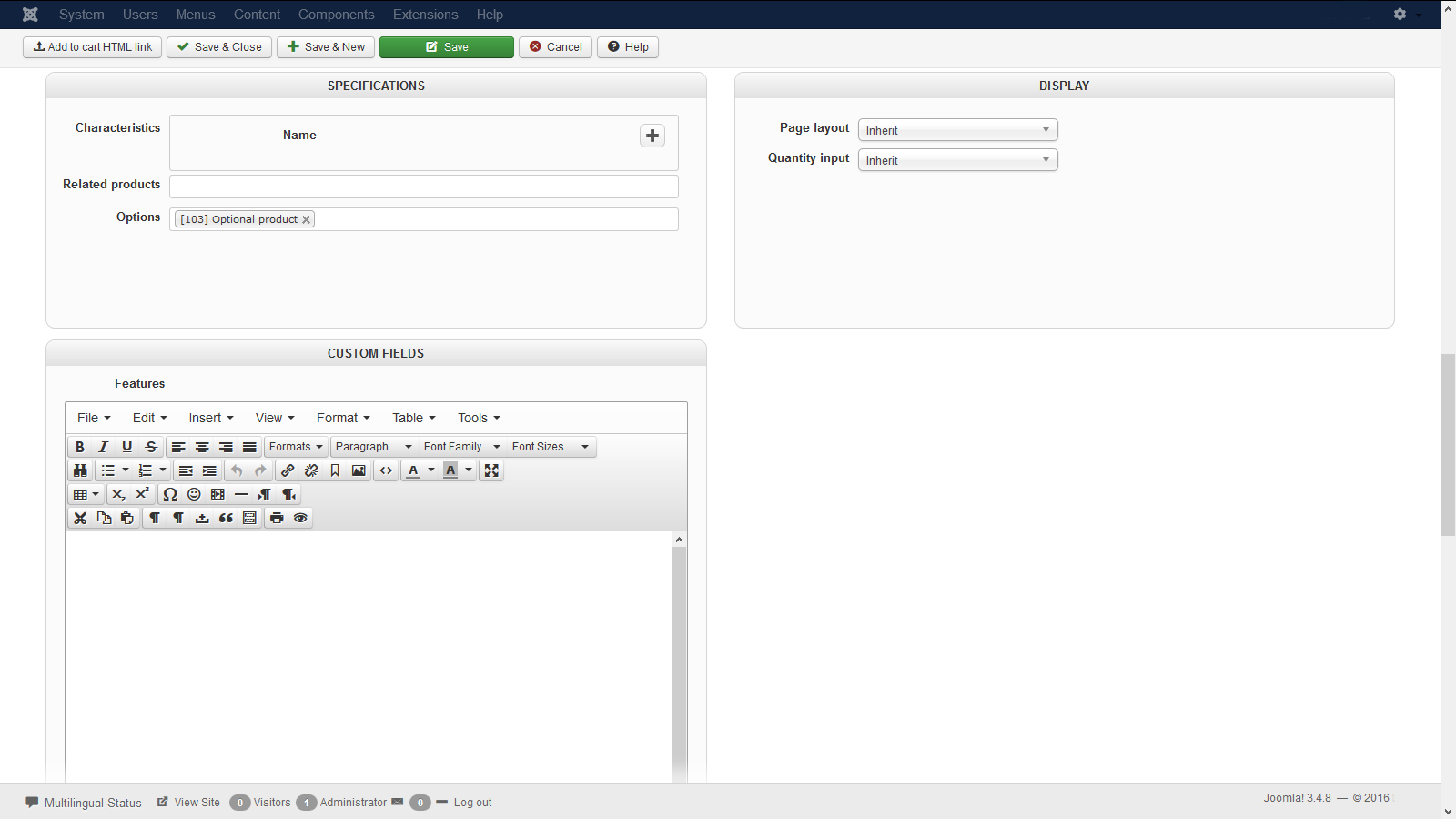 -- Joomla version -- : 3.4.8
