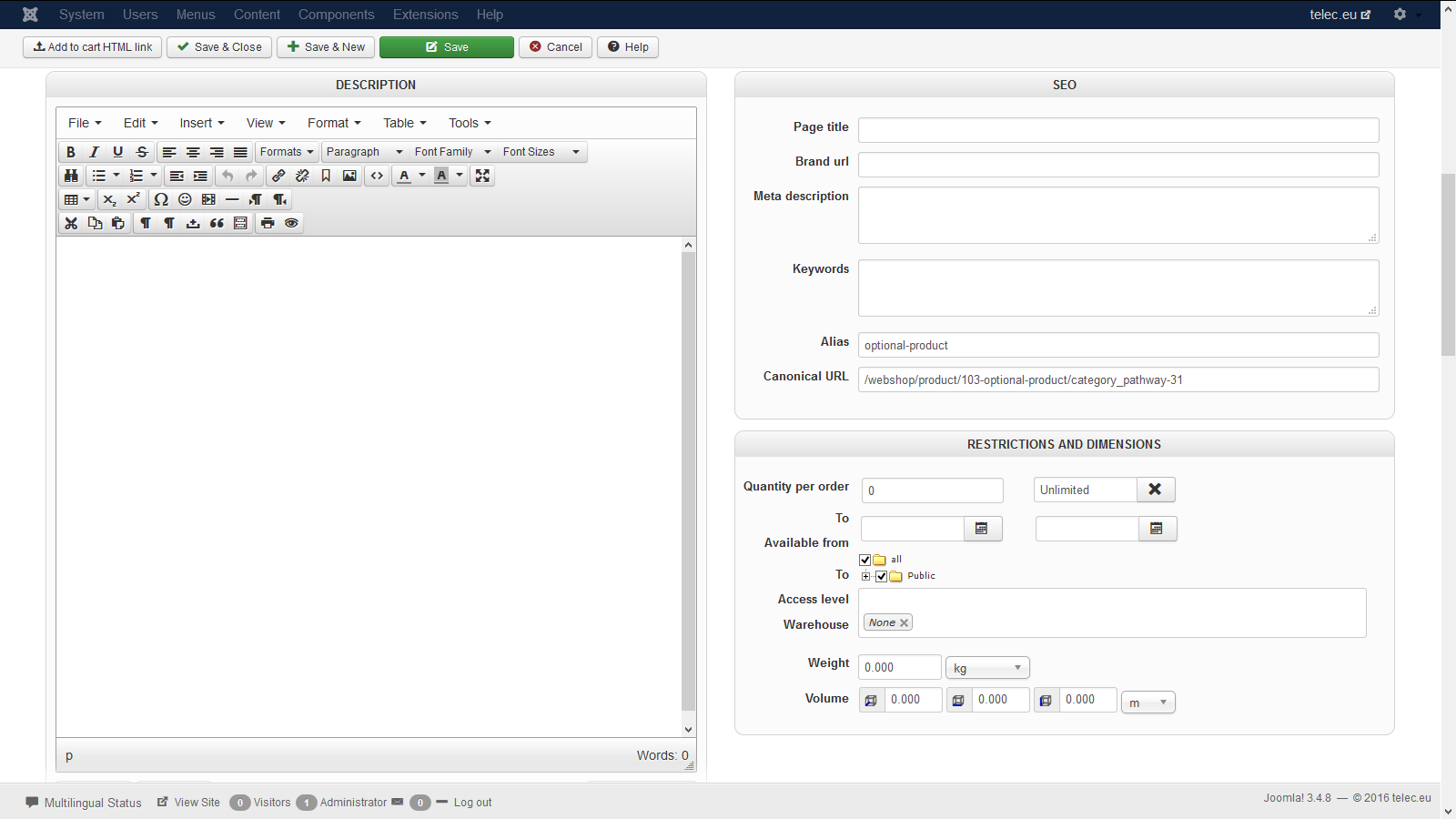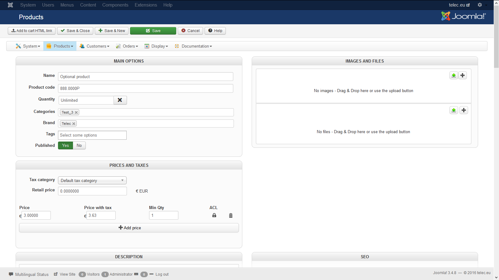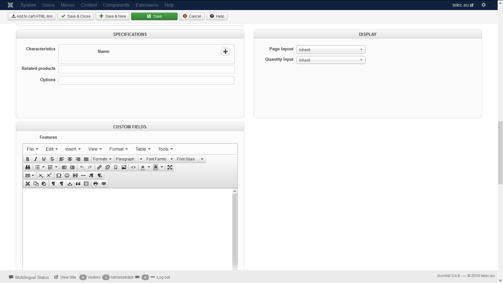-- Joomla version -- : 3.4.8