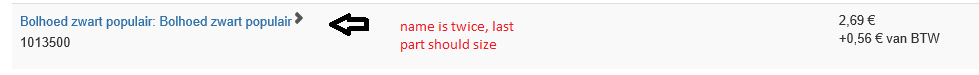 You have the same text for the product name and the variant name. And since you have the "Display the characteristics name" setting activated, you get both the product name and the variant name displayed.