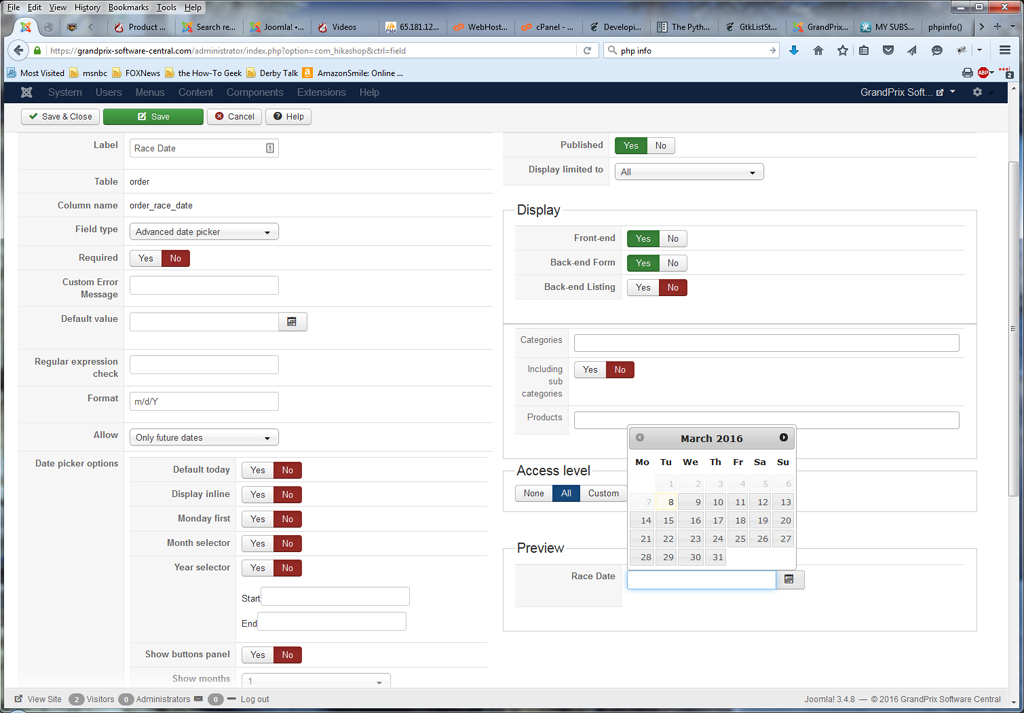 URL is grandprix-software-central.com . You would have to go through the checkout process. On the Finish page, there is a Race Date box. Though, the screenshot shows the issue.