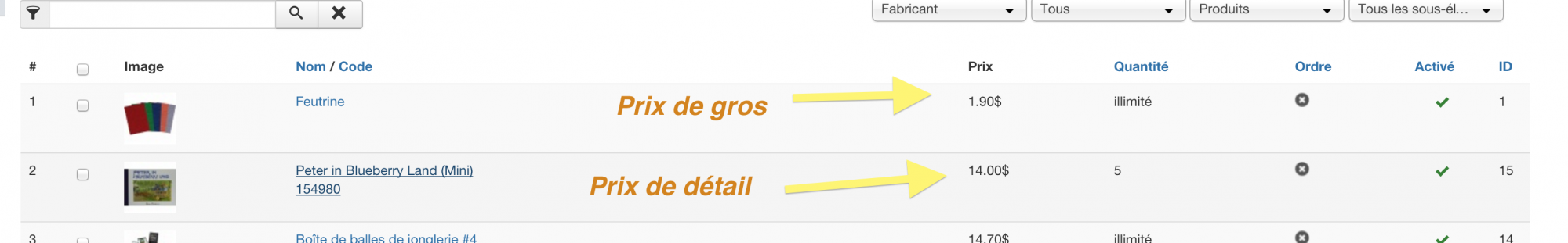 Il n'y a pas vraiment d'ordre. C'est au hasard en fonction de l'ordre dans lequel MySQL renvoi les prix.