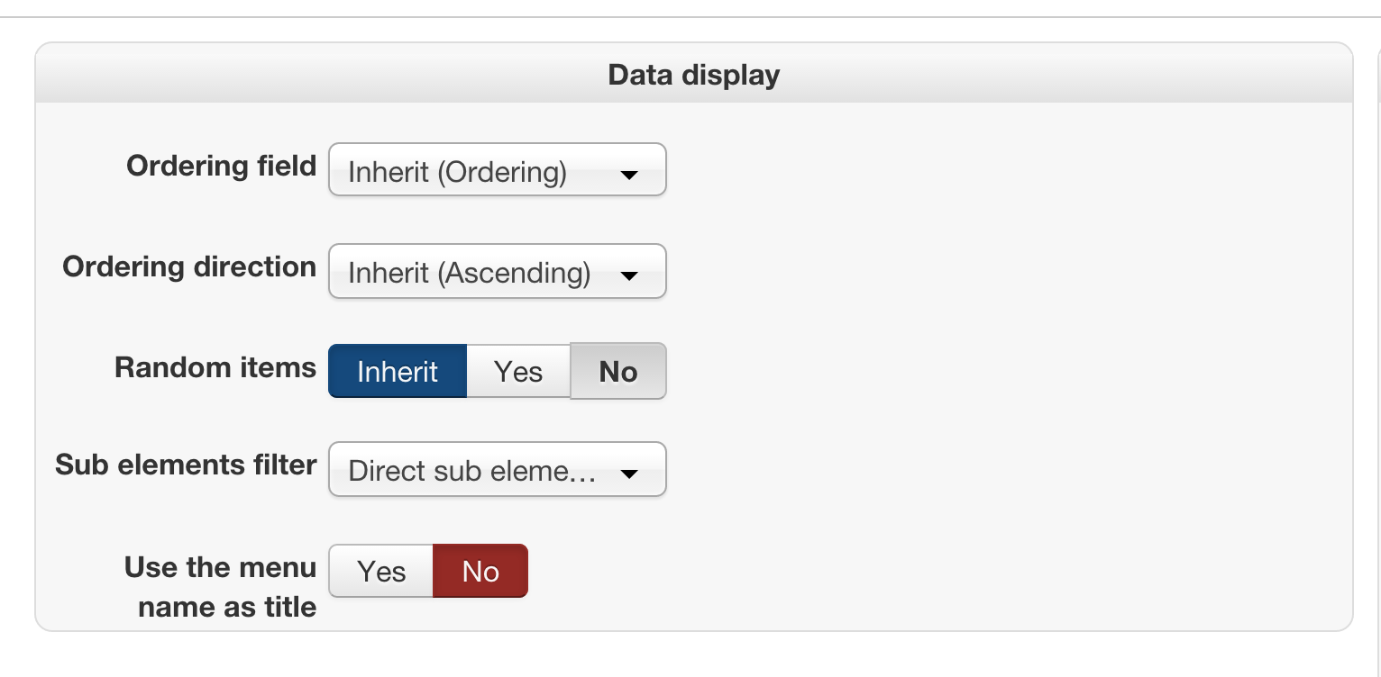 1. Edit your menu item via the Joomla menu manager, and under the "product options" tab, check that the "sub element filter" setting is set to "direct sub elements".