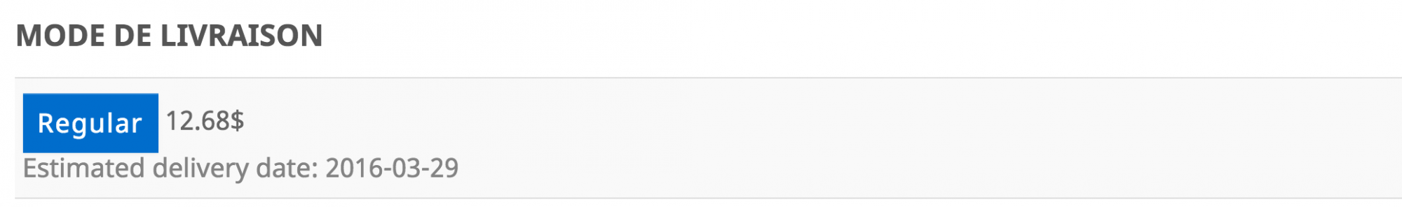 Pour le bouton, cela vient du nom de votre méthode de livraison. Editez votre méthode de livraison, et utilisez les drapeaux de traduction pour traduire ce texte.