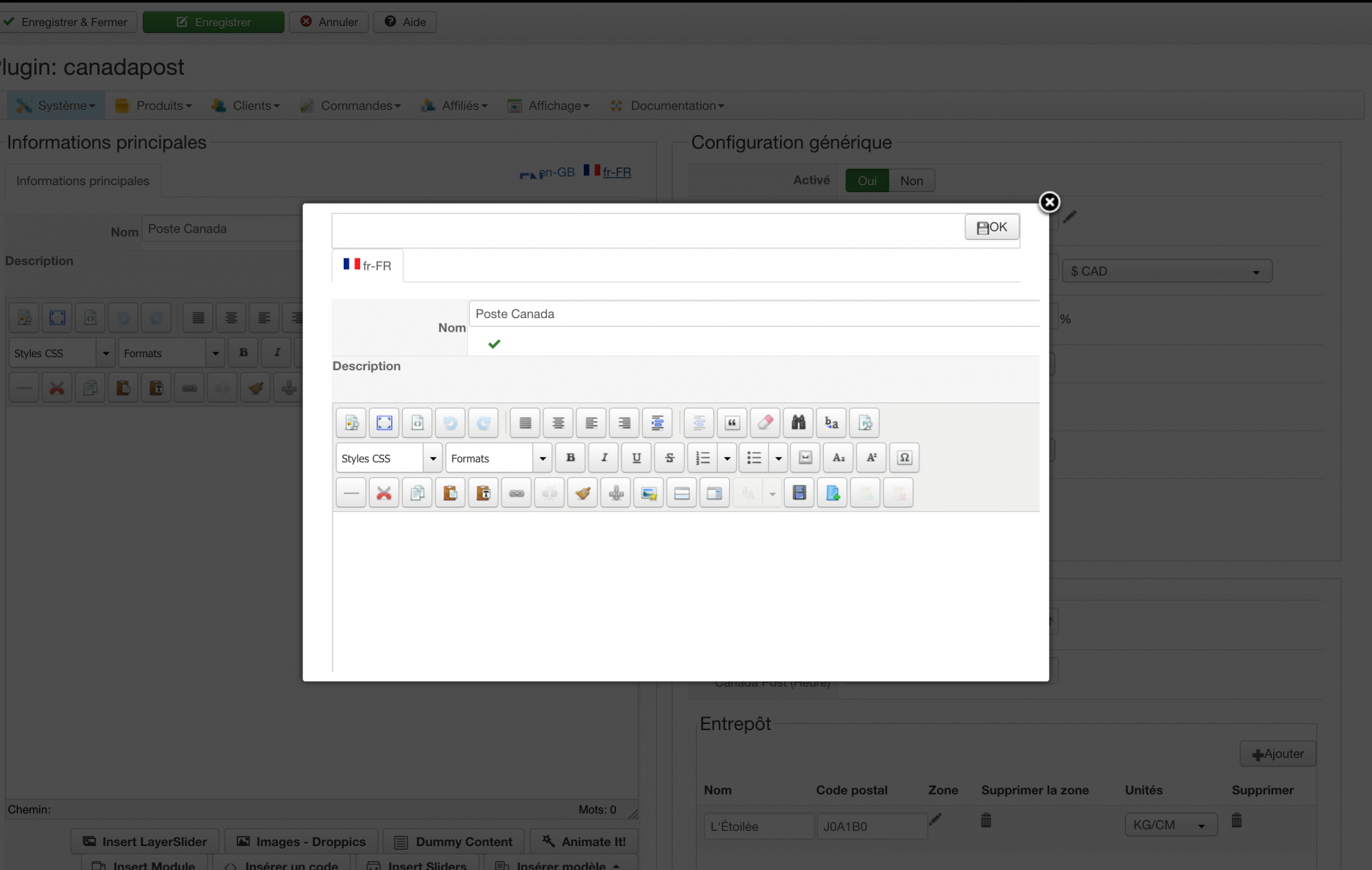 dans le fichier plugins/hikashopshipping/canadapost/canadapost.php
