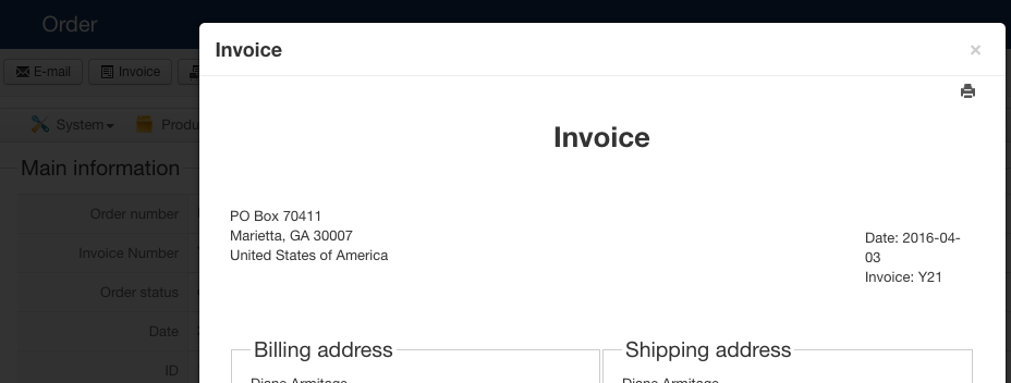 The backend, in the order itself at the top is an invoice button. We use this to print.