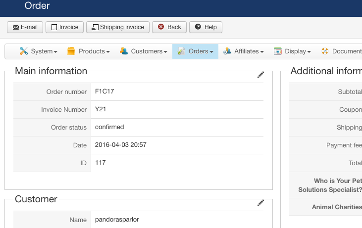 When in the order before going to the invoice, the first section is Main. The number there is what we need to add to the invoice.