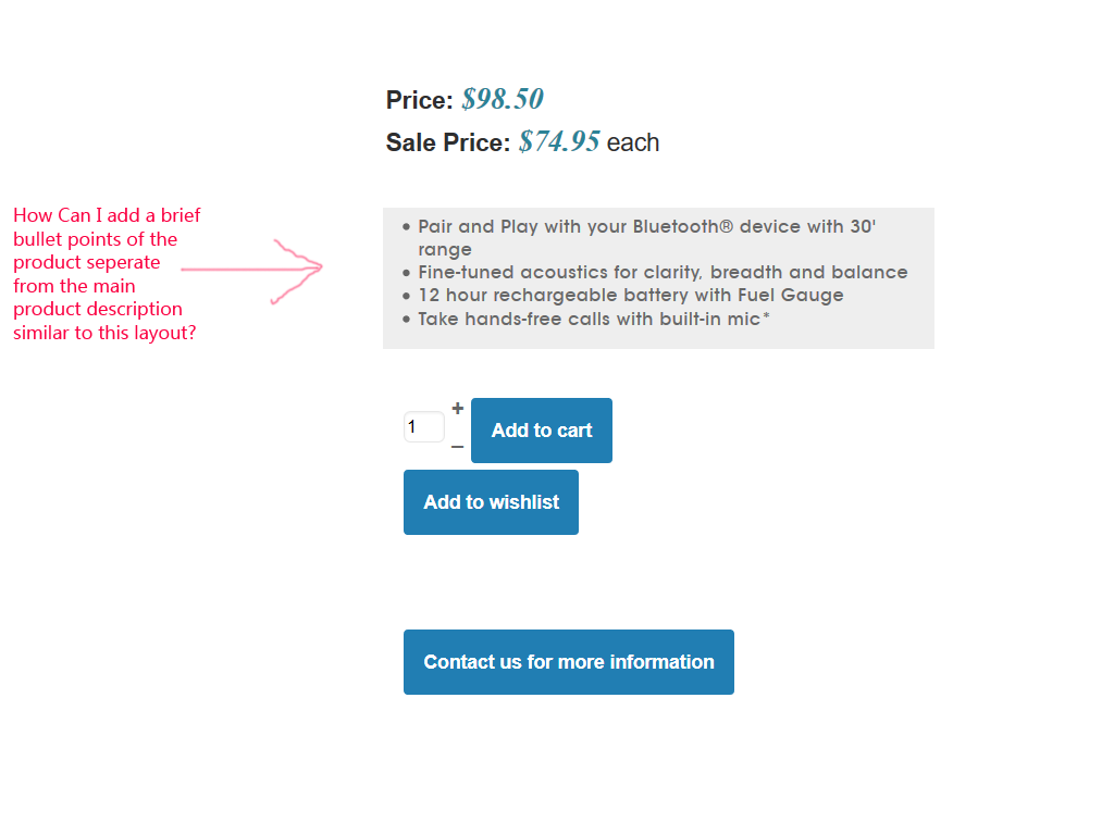 Brief Bullet Points Under Price Product Page