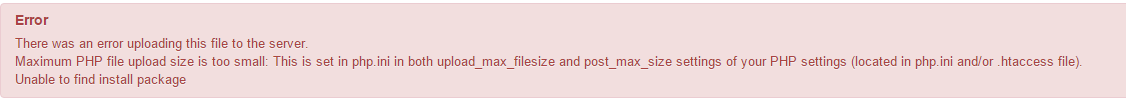 The first message indicates that your php.ini settings are two low. You can ask your hosting company to increase them and then it should work.
