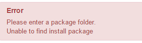 The second message indicates that either you didn't provide the correct folder for the install from folder process, or that you didn't upload all the files and folders of the install package in the folder that you specified (you need to extract the files on your local computer and then upload them to the tmp folder, if you upload the zip in the tmp folder, it won't work).