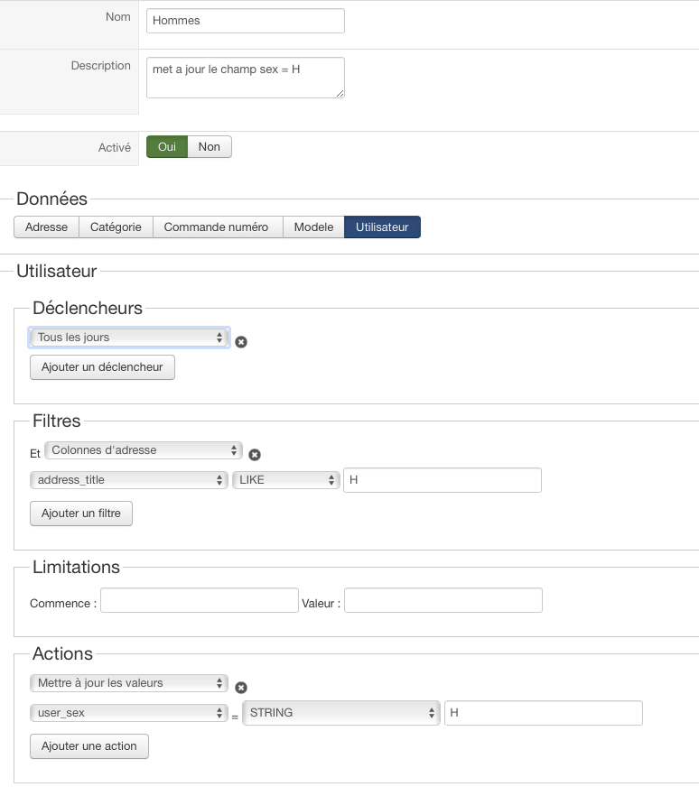 Le déclencheur prend bien en compte la création d'un utilisateur HikaShop, pas d'un utilisateur Joomla (vous verrez, cela fonctionne même pour les invités.