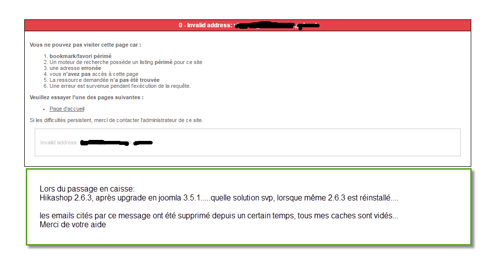 Comment se fait il que le message d'erreur me donne des erreurs sur des emails qui ont été éffacé, et que le cache est vidé .