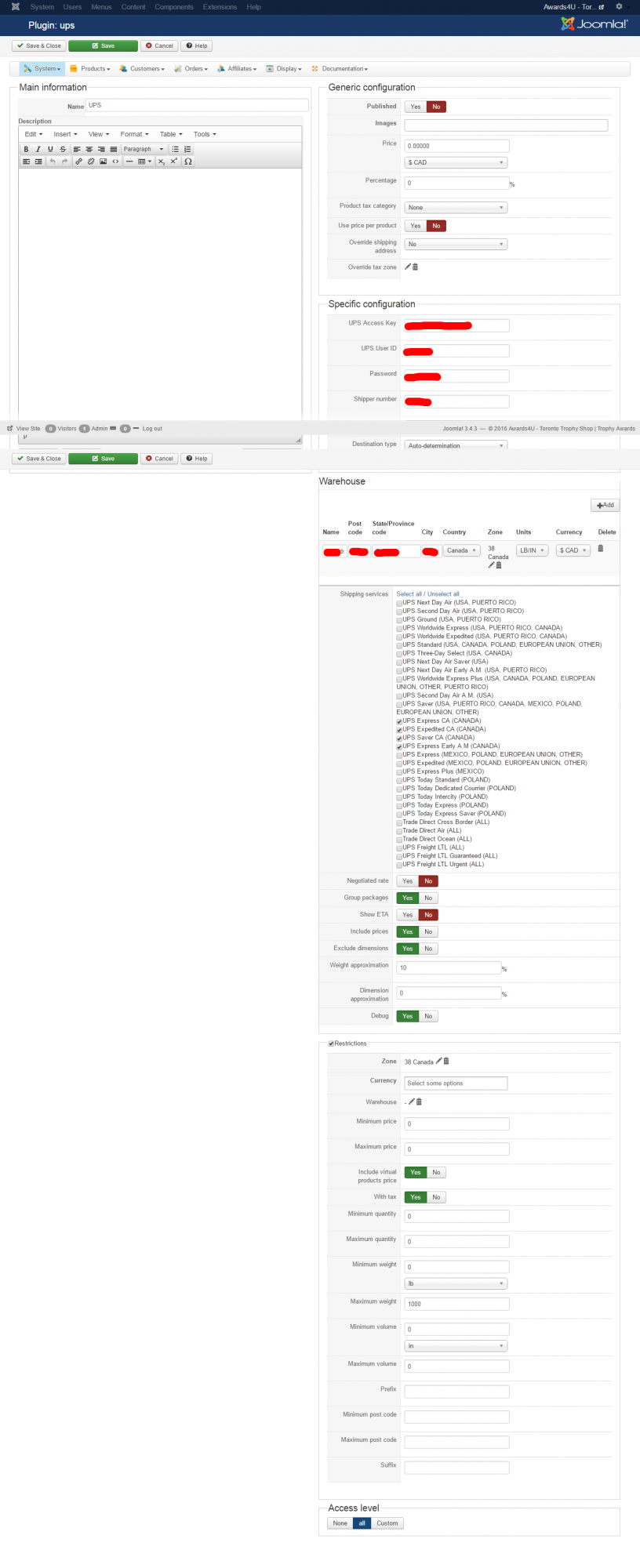 There take.ms/HGwpo the warehouse need to be filled in your UPS plugin, but you need to leave the zone empty.