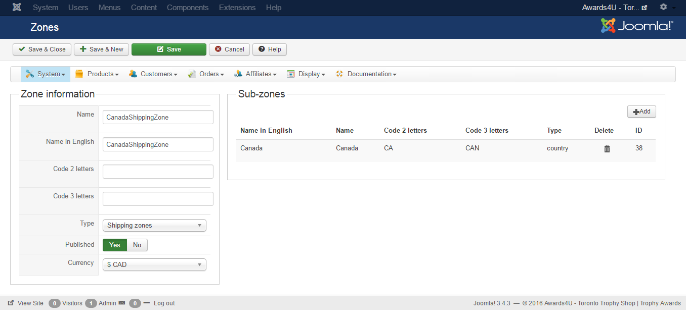 3. Shipping zone, it just only one selected country as "Canada"