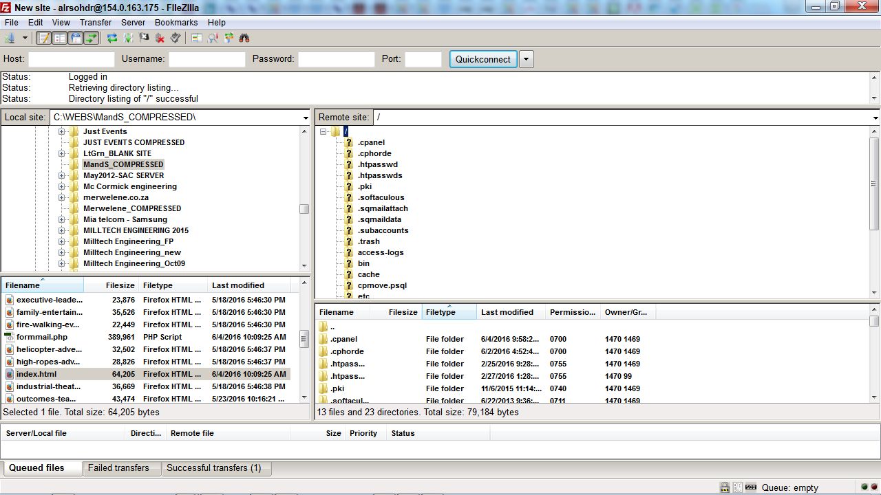 I correctly received the access. But I will definitely need a FTP access too to debug that issue.
