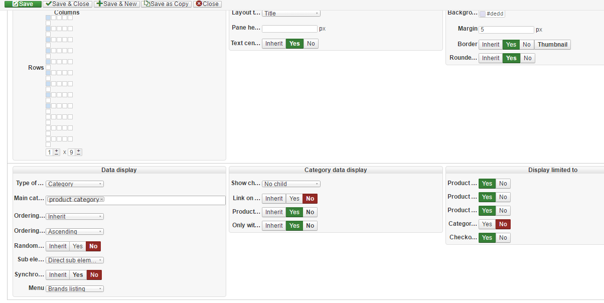 I've checked your website and I do see the carousel settings in your backend when editing a products listing module: