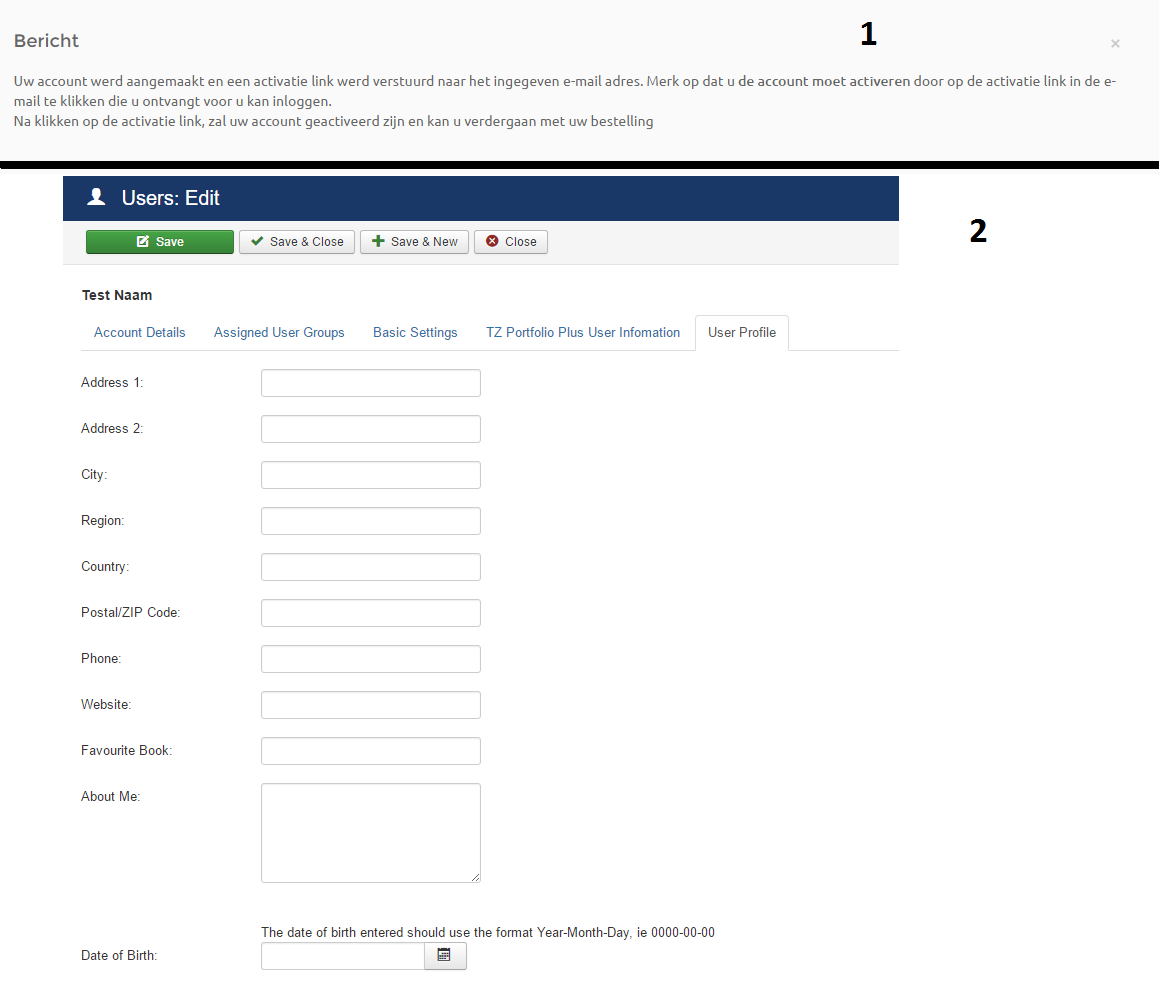 this information is not saved in the backend of Joomla (part 2 of added file) despite the confirmation (part 1 of of added file)
