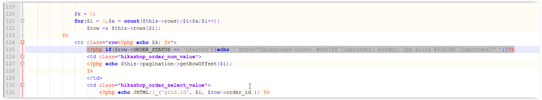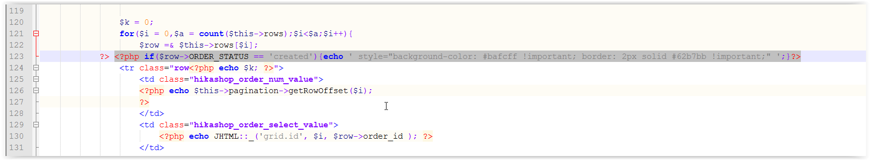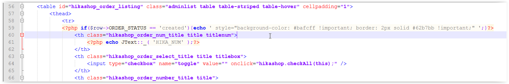 check out this code on line 123 of admin/component/hika/view/ order/tmpl/listing.php