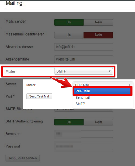 1°) Can you try on your Joomla Configuration to switch to SMTP for PHP Mail ?