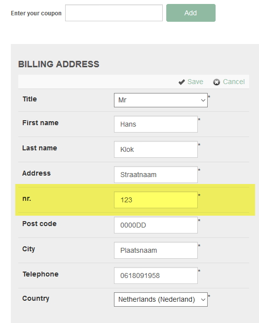 I added a custom field to the address. When I edit the address in the checkout on the frontpage the number field is there. When I save the address the number field is gone. How can I add this number field to the address box on the checkout page? I hope you help me with a solution!