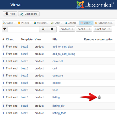 - Check your HikaShop override view in Components => HikaShop => Configuration, then in Display dropdown select Views.
