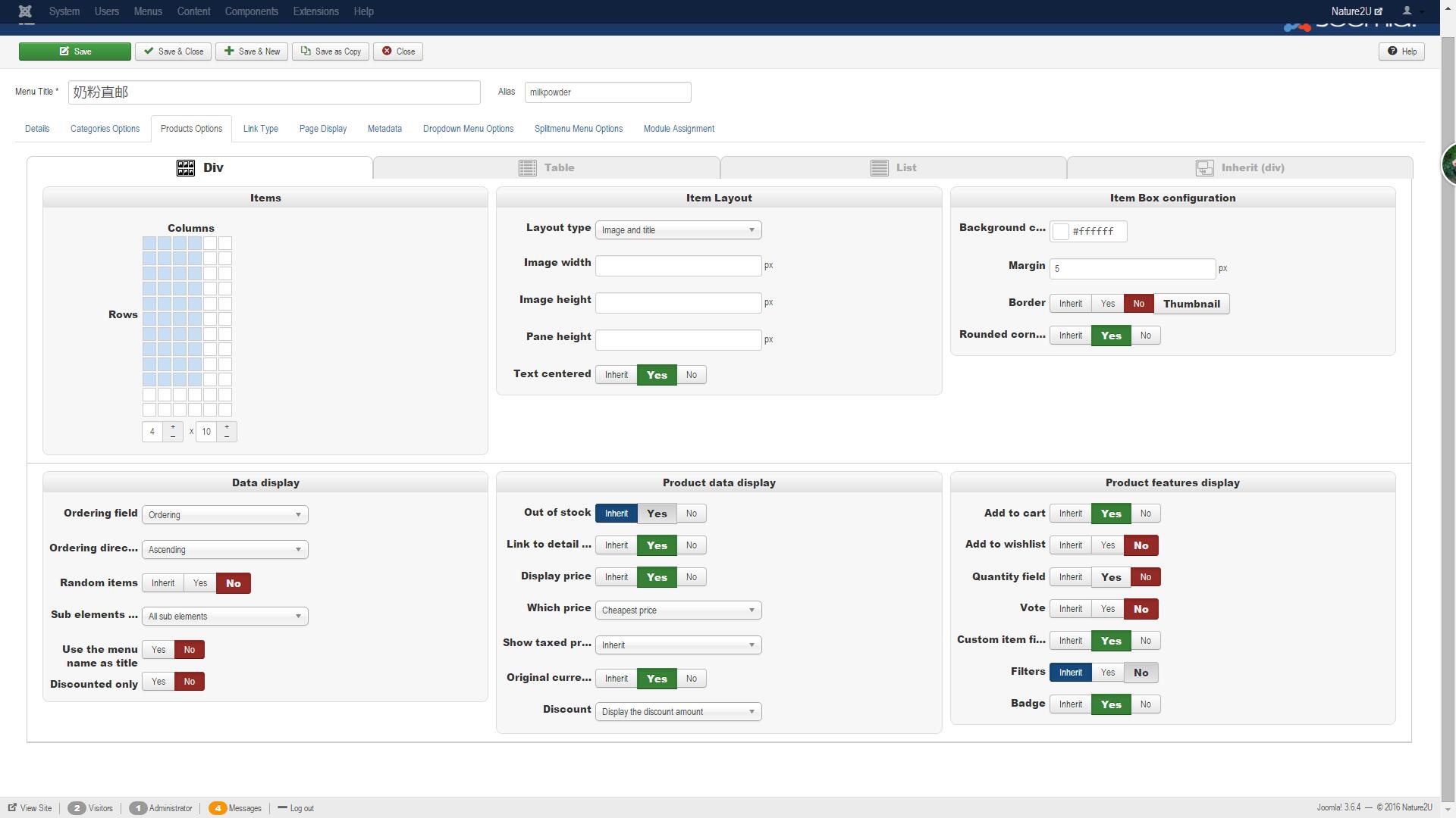 Then, please provide screenshots of the settings of one of the menu item with the problem and a direct link to it.