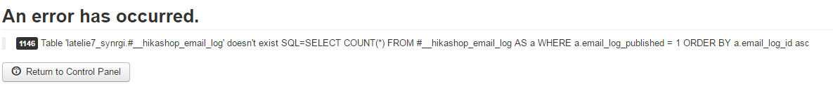 When I go to Email History, I get following Error :