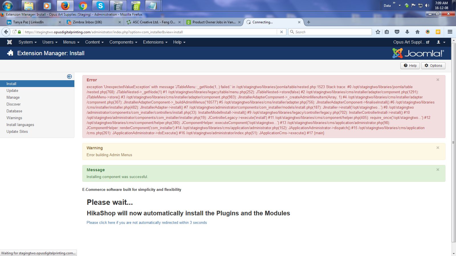 Update error on install - not building admin menu