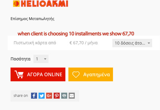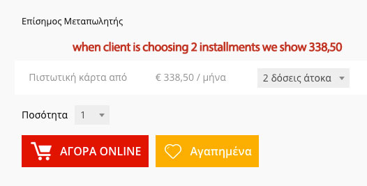 Price depending credit card installment in product page
