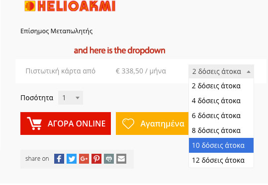 I ve been thinking and thinking with no result about how can I show credit card installments that shows the amount of the installment depending the choice o the visitor in the specifiq dropdown.