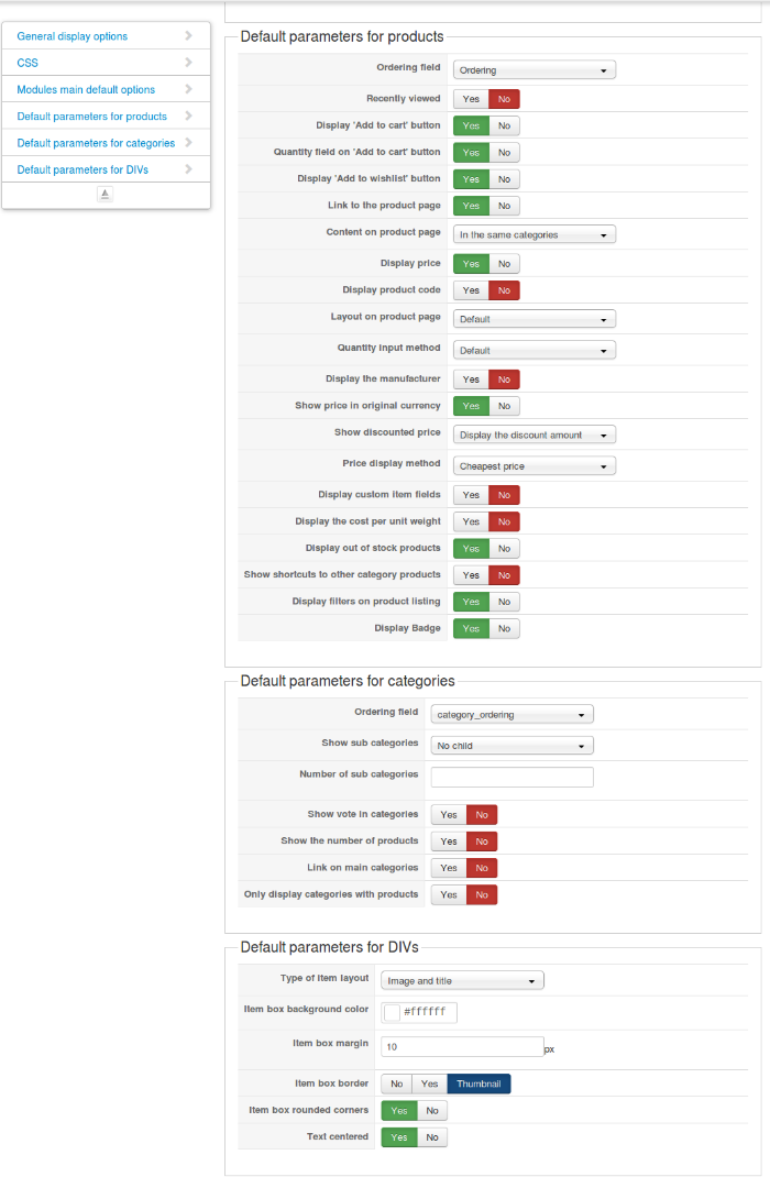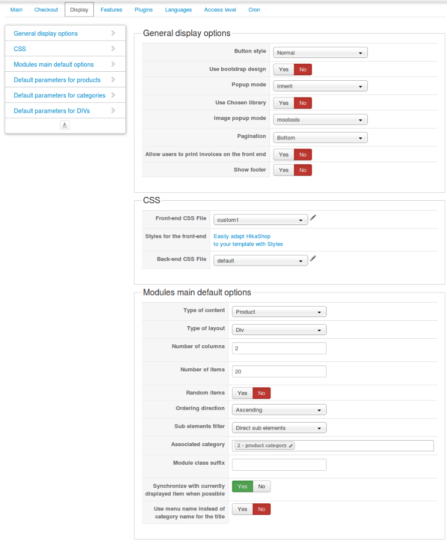 I'm talking about the Products section under the Main tab of the HikaShop configuration, not the products listing where you have the categories explorer on the left.