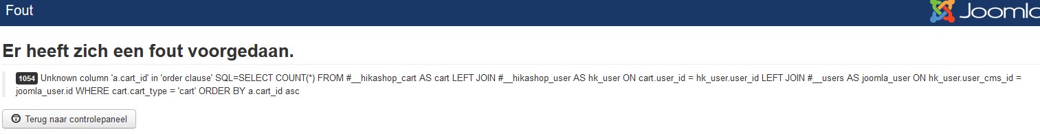 Furthermore tha carts overview is shown in a ascending instead of descending order. When you try to change the order by clicking on the collumn title of the "id" collumn an error is thrown.