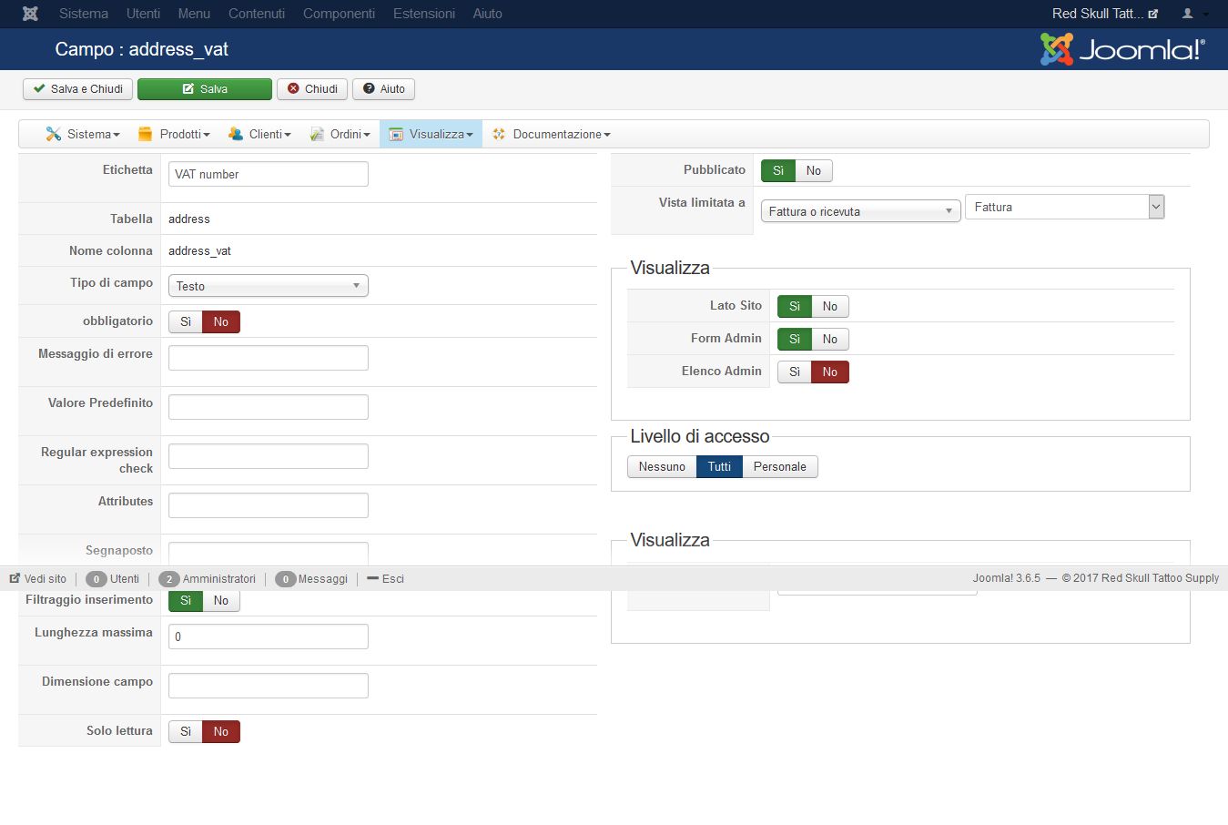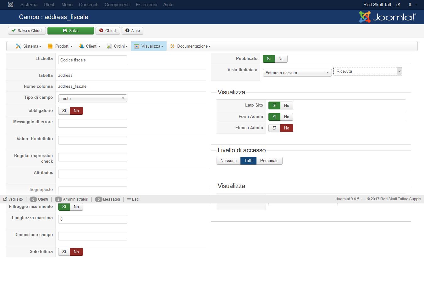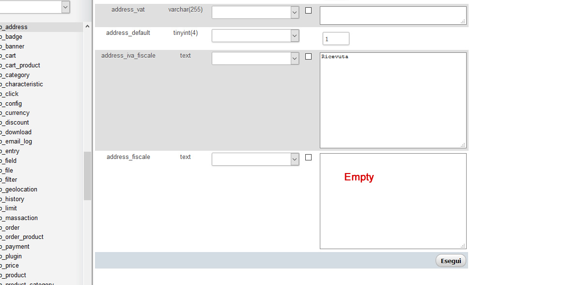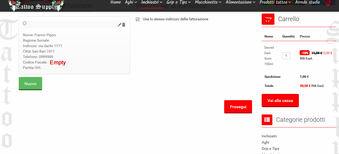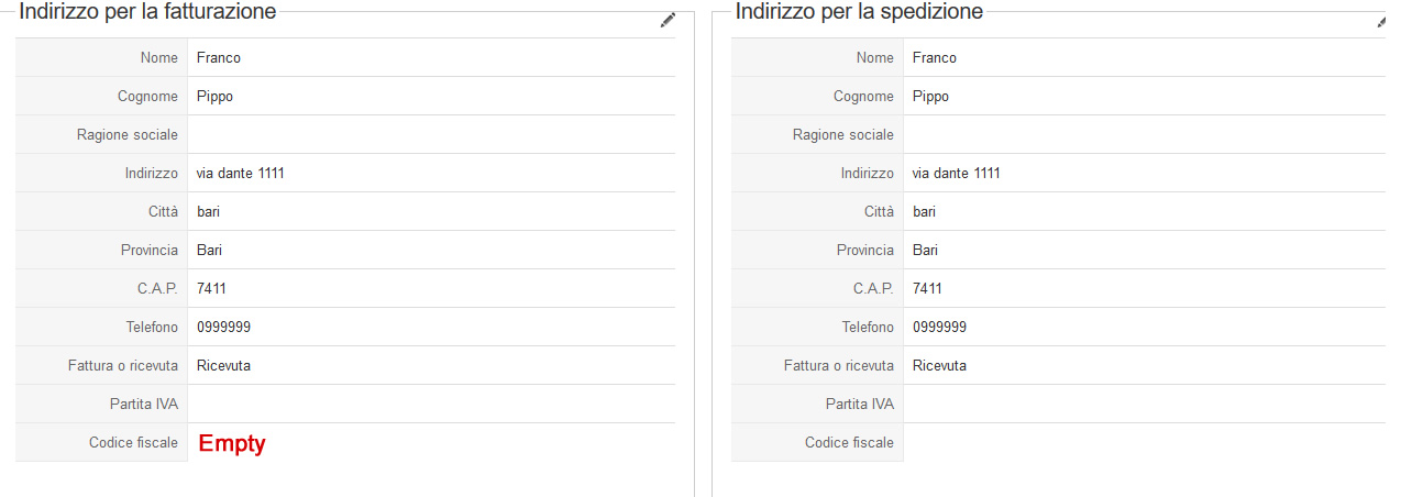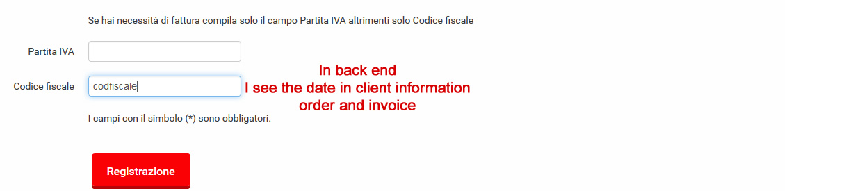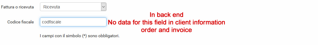 Now If the user choses "ricevuta" and He fills that field with his data,after the registration if I check the data of registration or his order that field will seem empty, with no data inside just that field!