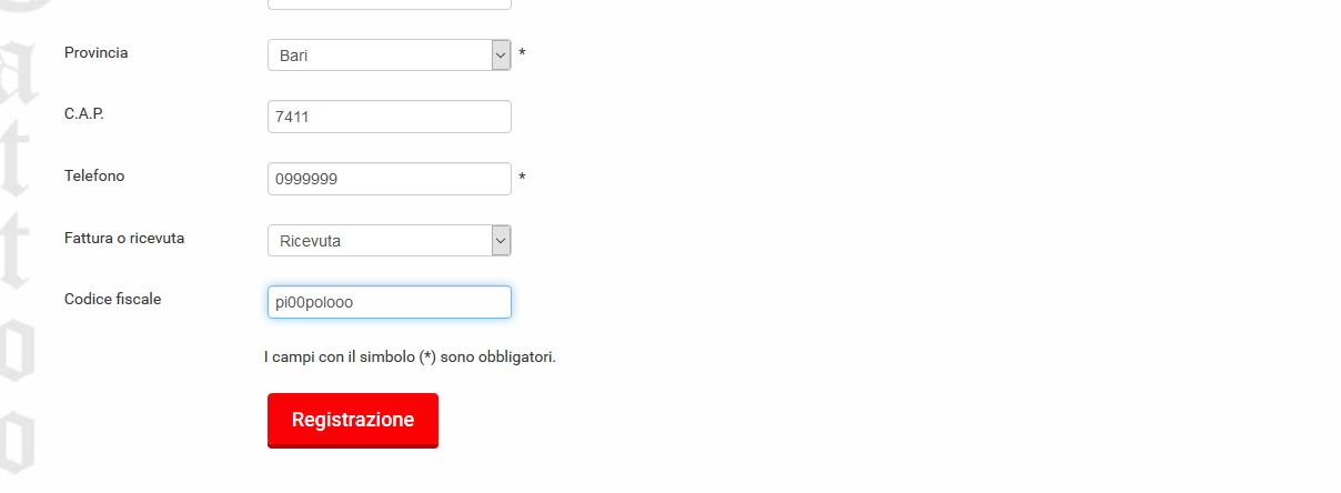 In the registration form there is a select field, where if a user selects "fattura" it shows below the field "partita iva" while if the user selects "ricevuta" it shows "codice fiscale".