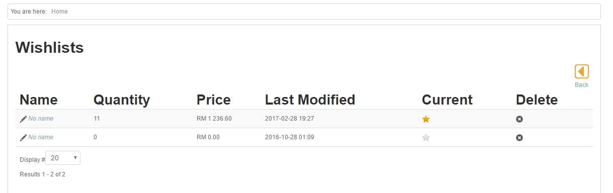 3b - you get a WishList with "No Name" as the product item names, and that Wishlist difffers from your actual WishList which you can view by clicking on y Account > My Control Panel which allows access to the Hikashop Wishlist through Hikashop User Control Panel