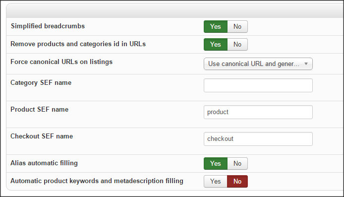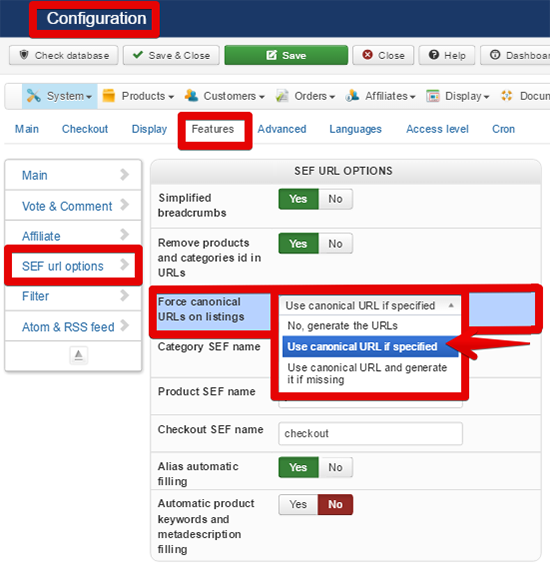 You will reach it in Components => HikaSHop => Configuration, then in Features display, and SEF URL OPTIONS menu.