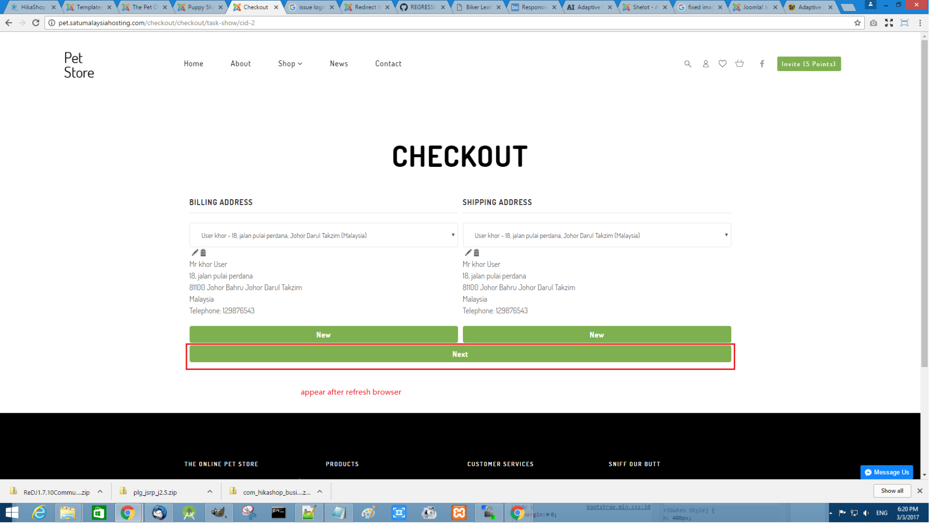 Need to refresh the browser and then the next button just come out