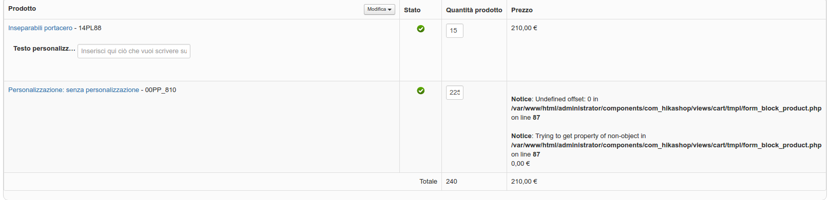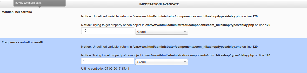 I found these error messages on the cart module.