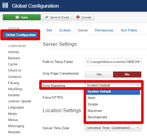 Go in System => Global Configuration and in Server tab: