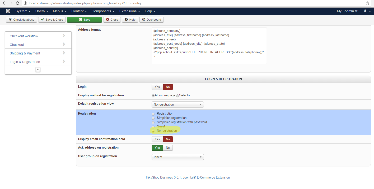 If you don't want registration, you can just turn off the new user account setting of the Joomla user manager.