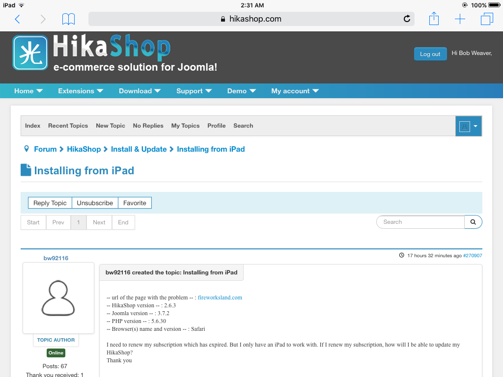 So this is a problem for me, and this is the entire reason I started this thread. Installing from an iPad. I am using an iPad, and I cannot download a .gz or a .zip file to it. You can't save those files to an iPad. And the auto installer button did not reappear even after I made the payment and attached the subscription to my site.