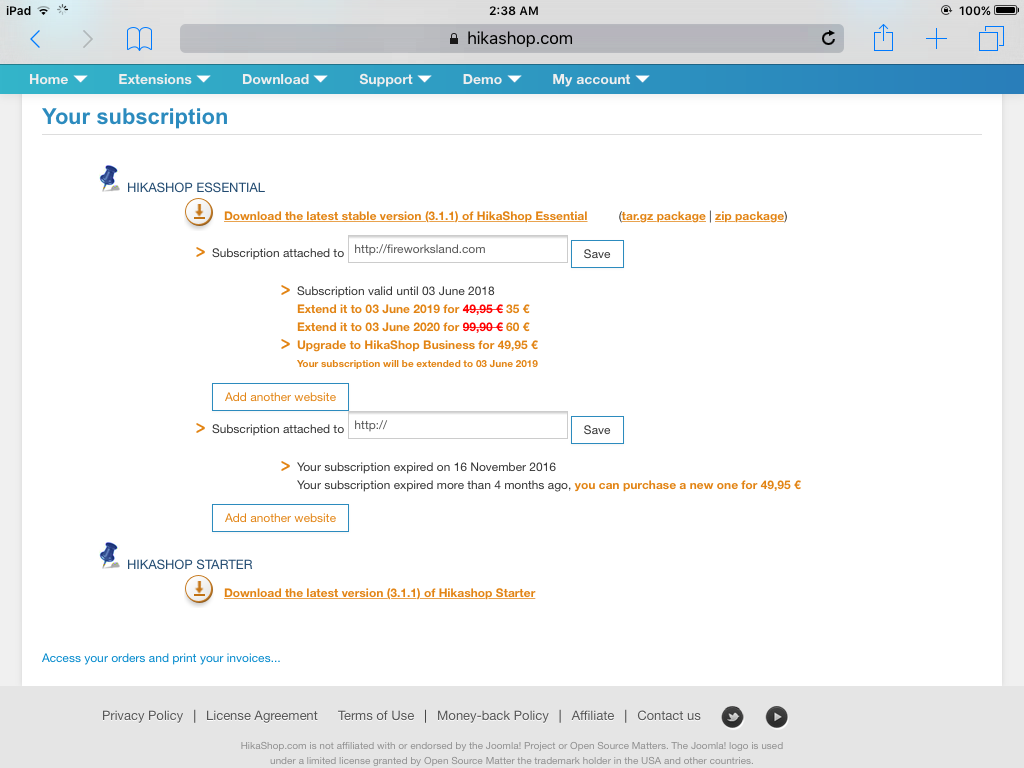 I made the payment again using PayPal. My account on Hikashop now shows that I bought a new subscription to Hikashop 3.1.1. I have attached that subscription to my site,