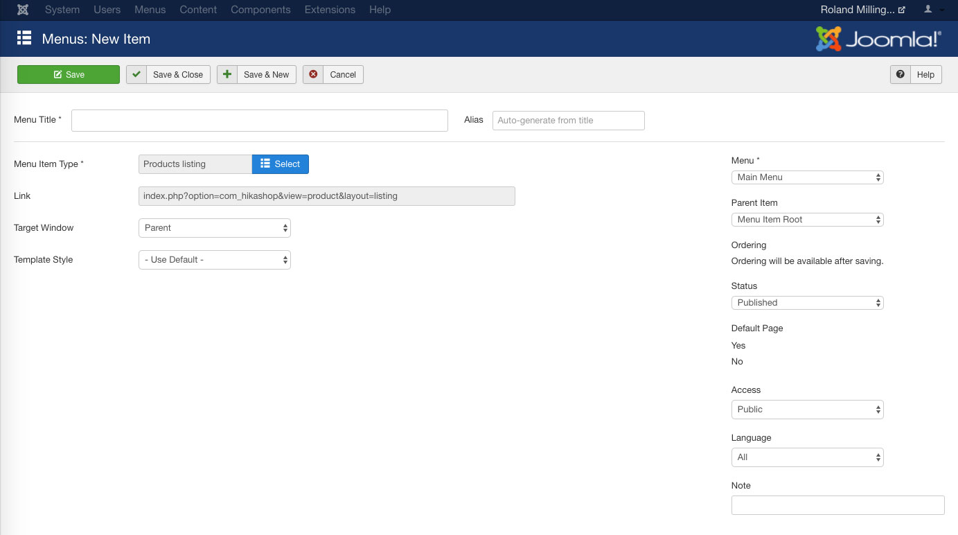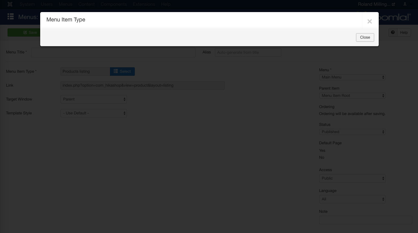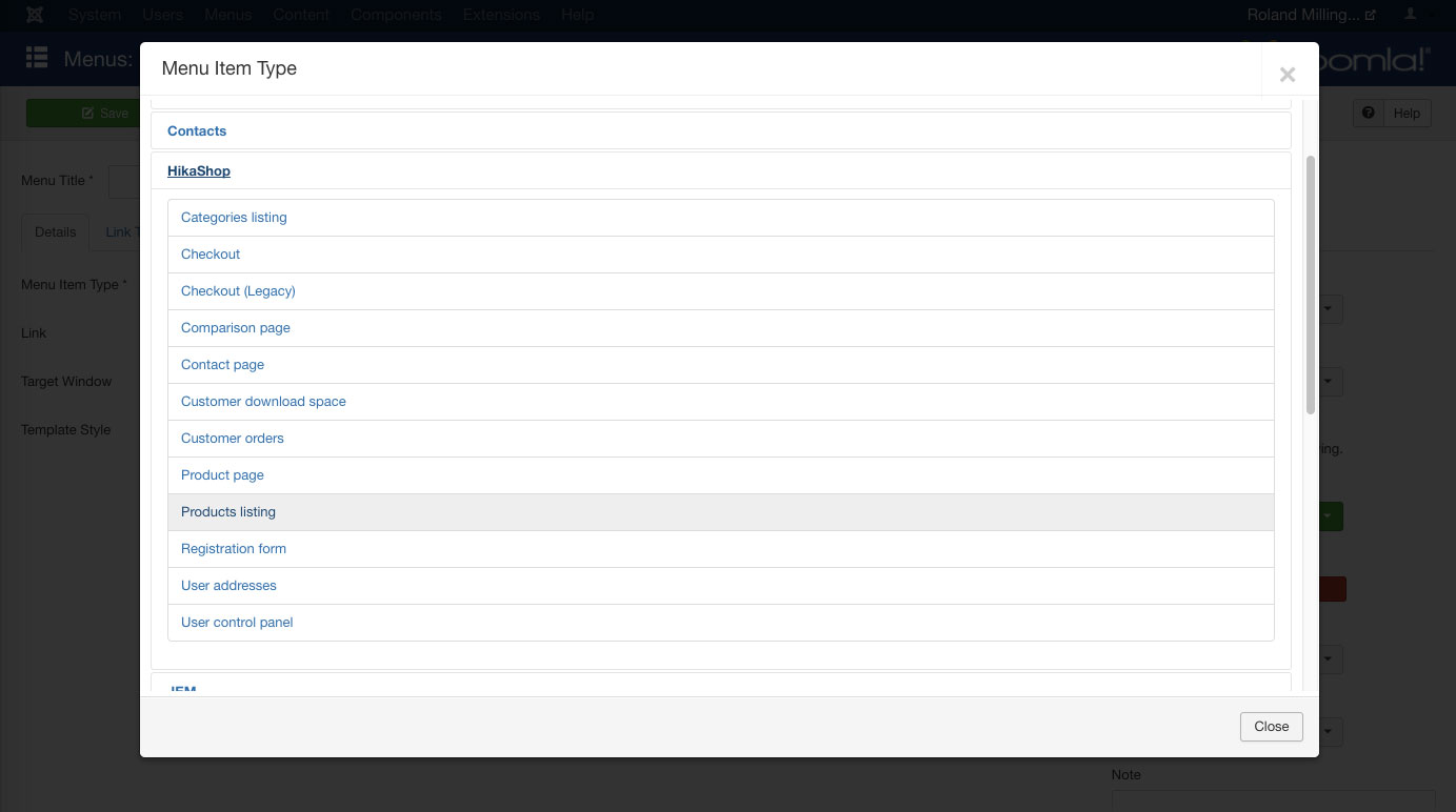 Menu creation issue … tabs disappear after selecting HikaShop item for menu