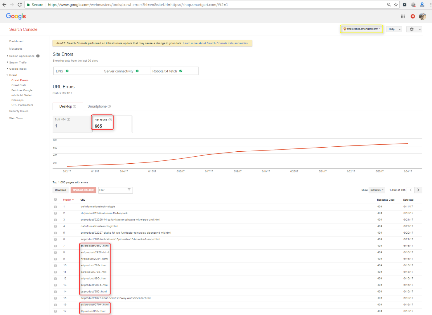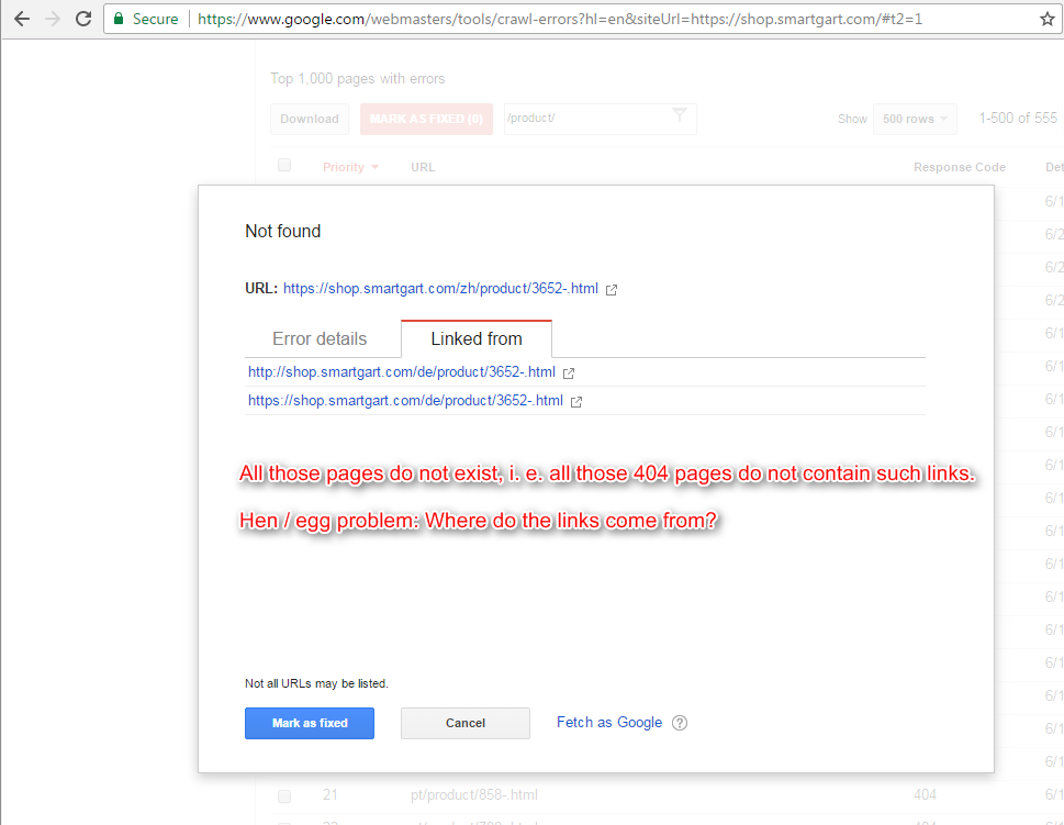 Hi, I have changed a few things on shop.smartgart.com a while ago, and now I see that webmaster.google.com reports that around 600 pages are no longer found.