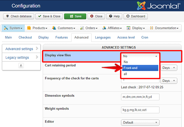 - Go to Main HikaShop Configuration (in Components => HikaShop => Configuration), and in Advanced tab, set this :