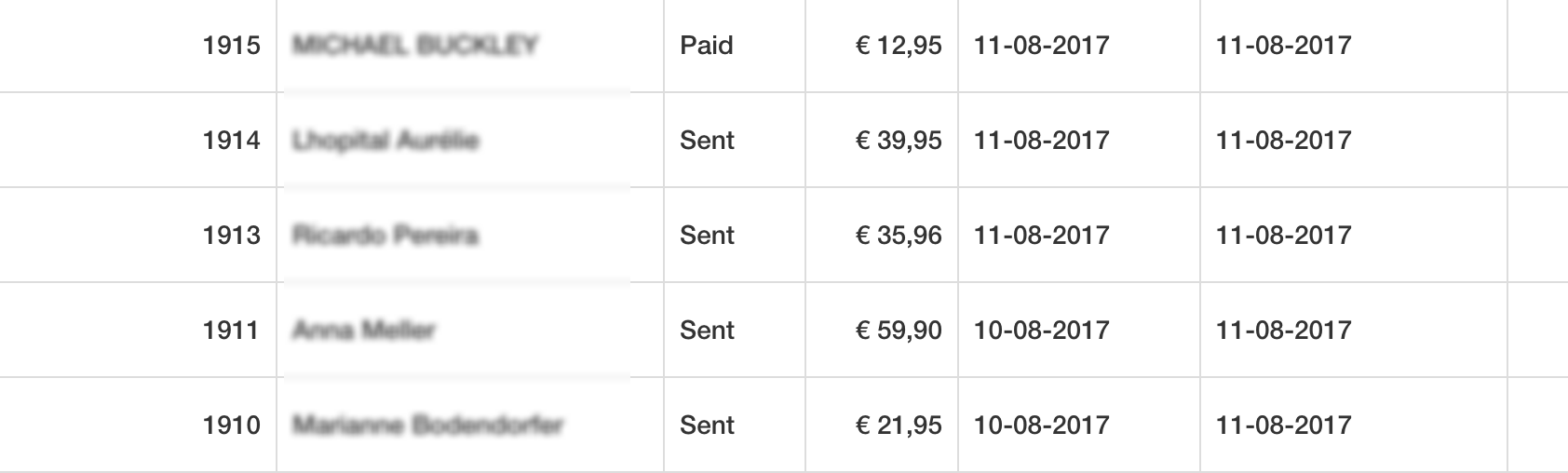 I made two screenshots from the same orders: