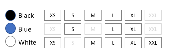 Remark, this example are with S,M,XL size type, but it also have to support 36,38,40....... size type.